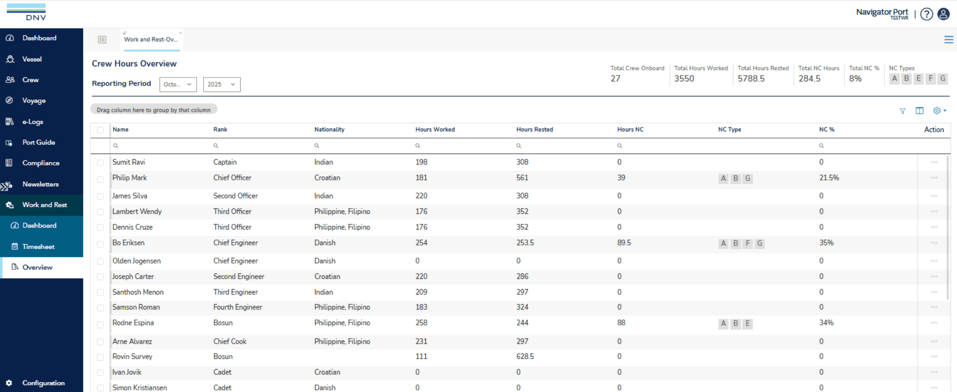 Prevent fatigue incidents and achieve compliance wherever you go: Navigator Port Work & Rest automatically calculates and checks Non-Conformities based on various regulations (MLC, ILO, STCW etc.).