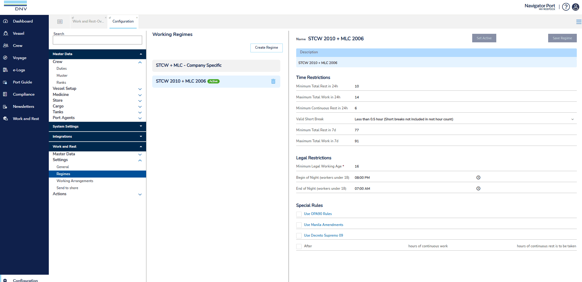 Monitor the work and rest compliance according to latest maritime conventions.